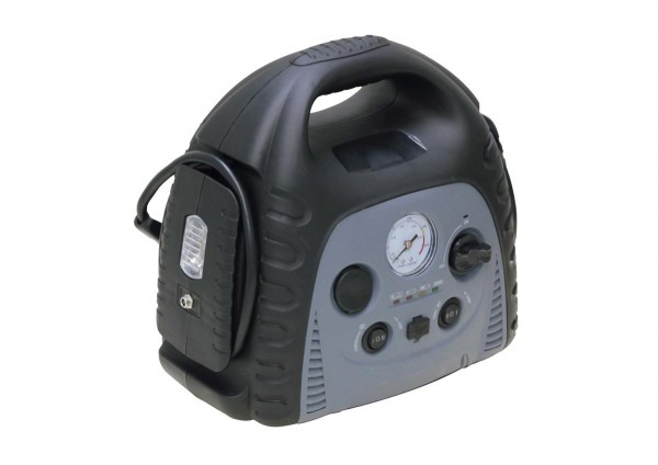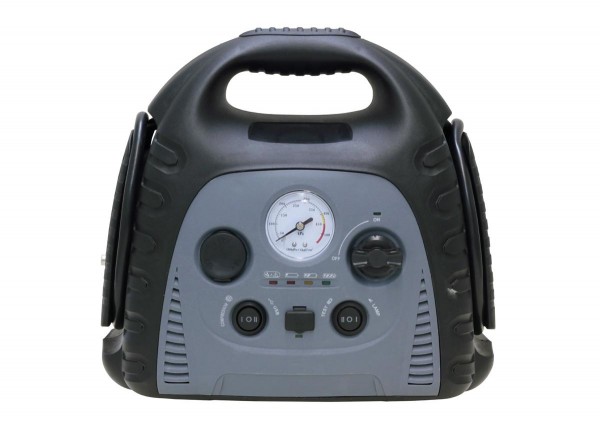 ガソリンエンジン始動支援(自動車12V使用、4000ccクラスまで)、バイクなどのバッテリー上がり始動支援ができます。エアーコンプレッサー装備により車・バイクなどの空気いれができます。LEDライト付きで緊急の作業もバッチリ!!USB出力端子付きでスマートフォンやデジテルカメラの充電も可能。また、シガーソケットを装備しているので12V仕様の電気製品が使用可能です。 |