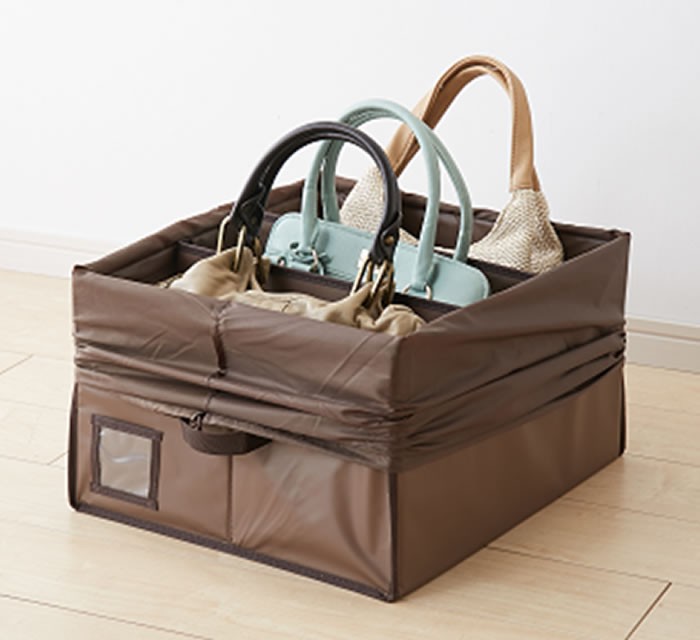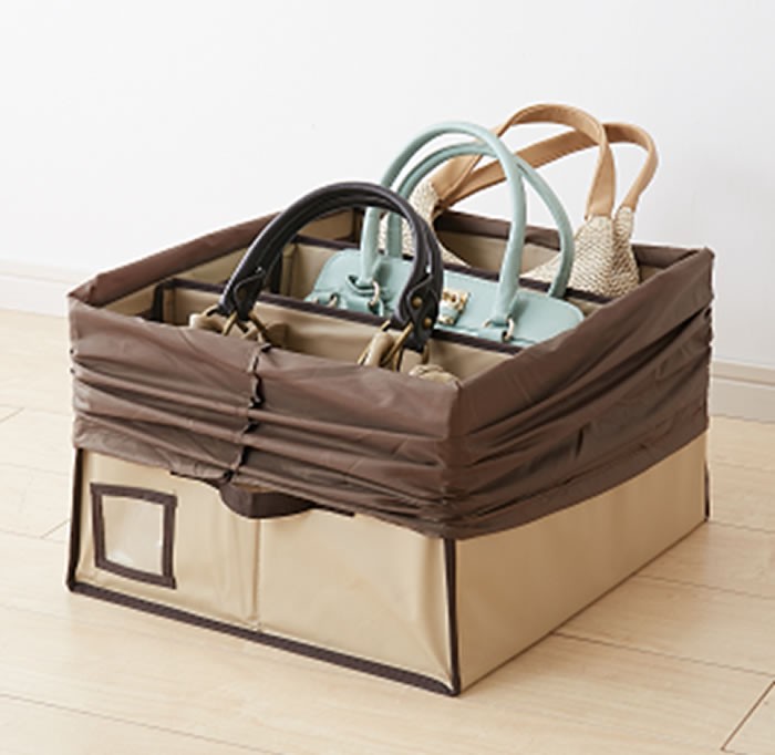 ●フタ部分が巾着式なので、色々なサイズや形のカバンの収納に便利。