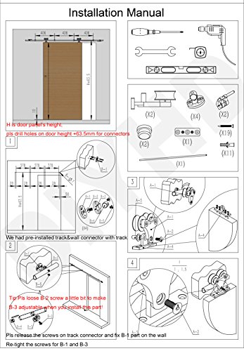 DIYHD 8FT Top Mount Solid Double Head Barn Door 3pcs Wheel Stainless Steel Sliding Barn Door Hardware Kit-16" apart holes on track