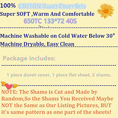 Studio : Abreeze Publisher : Abreeze Product Description Welcome to Abreee®-Home Textile Home! Abreeze® is a cross-border e-commerce store for offering bedding sets, curtain, rugs and knitted blankets, etc.We believe you can buy the "Mr. Right"products in our company. What's In The Pacakage? 1. Package Includes 1x Duvet cover (Comforter sold separately, not in sets) 1x Flat sheet 2x Pillow shams Note, Actual color may vary from the color on your screen due to monitor color restrictions. Enjoy these benefits when you use Abreeze Duvet Cover Sets Comfort 100% cotton,super softer and comfortabler than polyester microfiber.More healthy,good choice for your bedroom.Just enjoy this 100% COTTON duvet cover set.