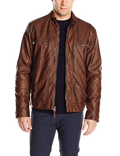 Calvin Klein Men's Faux-Leather Moto Jacket with Hoodie