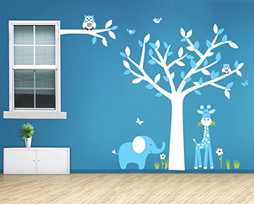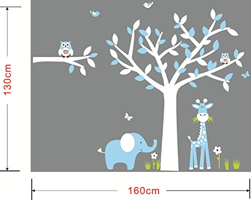 AmazingWall 130X160cm/51.2x63" Giraffe Elephant Owl Wall Sticker Living Room Bedroom Kids' Room Nursery Decor Home Decorations Removeable 1PCS/SET