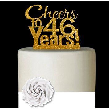 CakeSupplyShop Item#046CTA - 46th Birthday / Anniversary Cheers Super Gold Glitter Sparkle Elegant Cake Decoration Topper