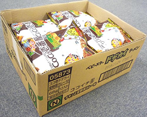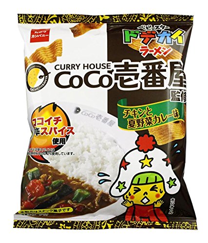 原材料:小麦粉、植物油脂、夏野菜カレー風味パウダー、トマト風味パウダー、砂糖、食塩、粉末卵、粉末油脂、チキンエキスパウダー、チキンパウダー、カレー粉、スパイス加工品、ミート調味エキス、野菜エキス、たんぱく加水分解物、ミート調味パウダー、加工デンプン、調味料(アミノ酸等)、香料、酸味料、香辛料抽出物、甘味料(ステビア)、乳化剤、酸化防止剤(ビタミンE)、パプリカ色素、(原材料の一部に乳成分、ごま、大豆、豚肉、ゼラチンを含む)