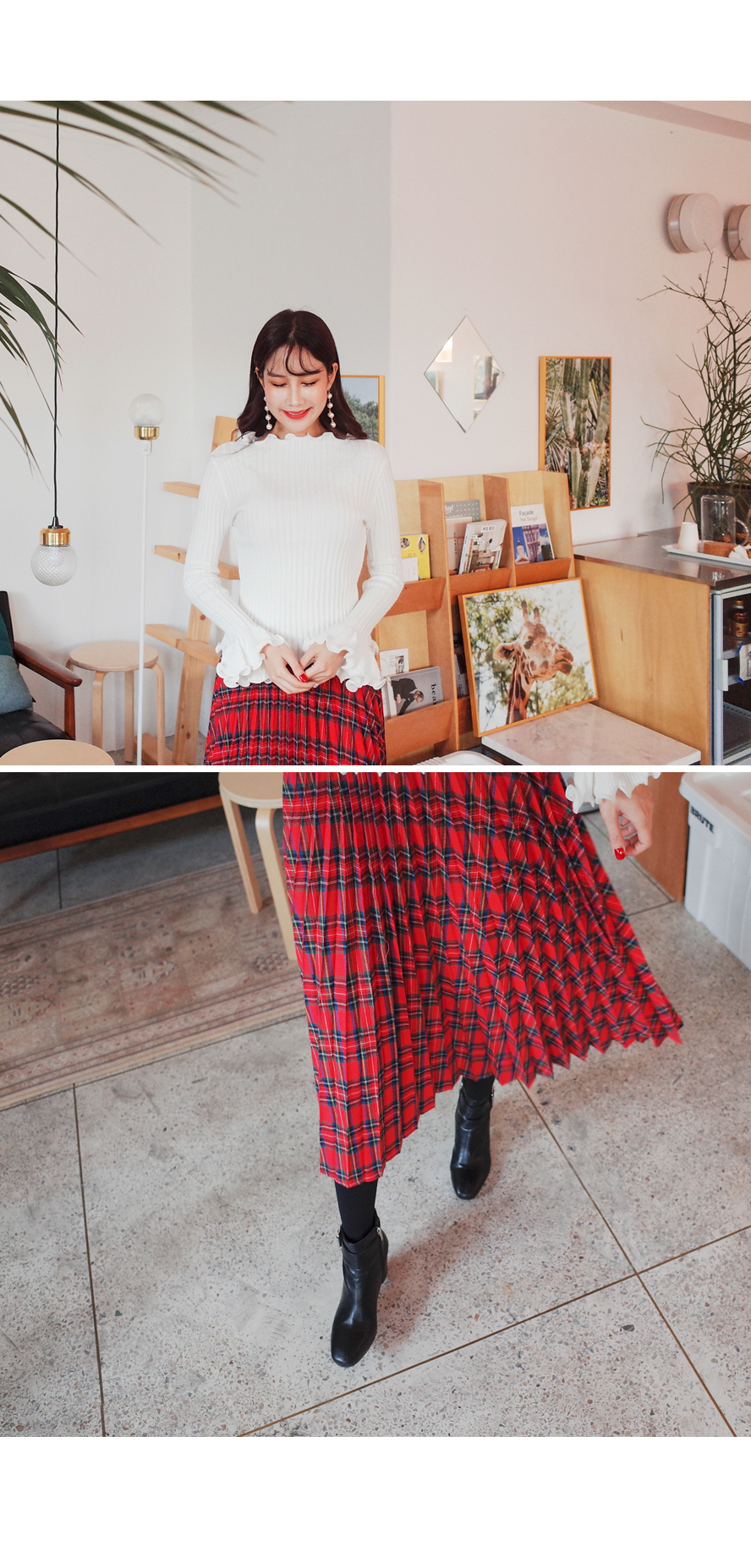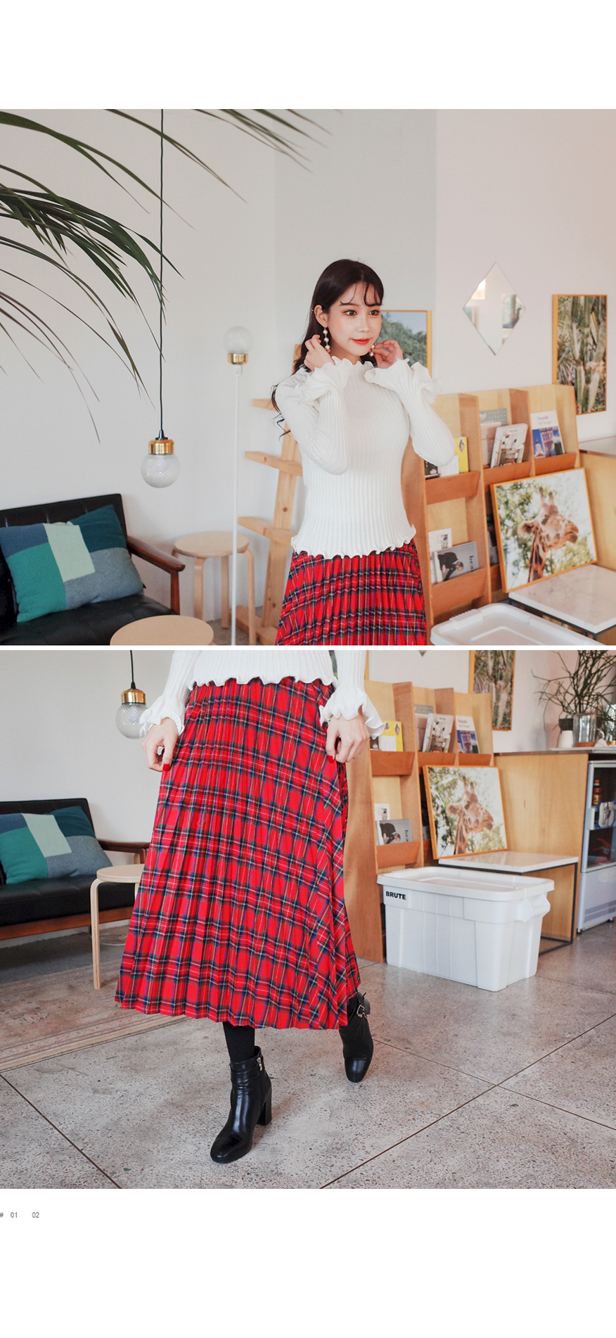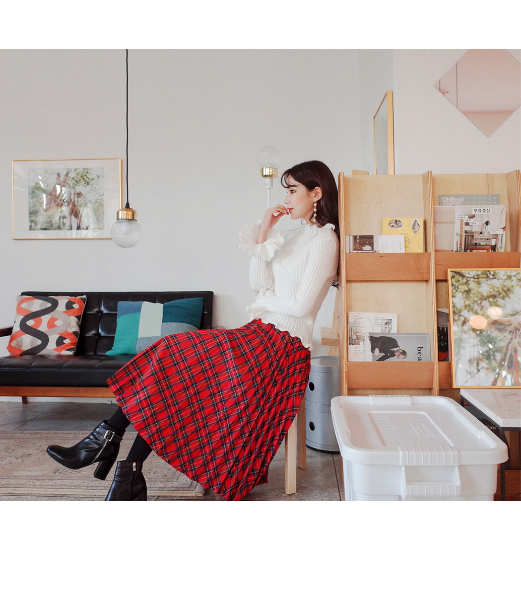 체크플리츠감성 스커트
