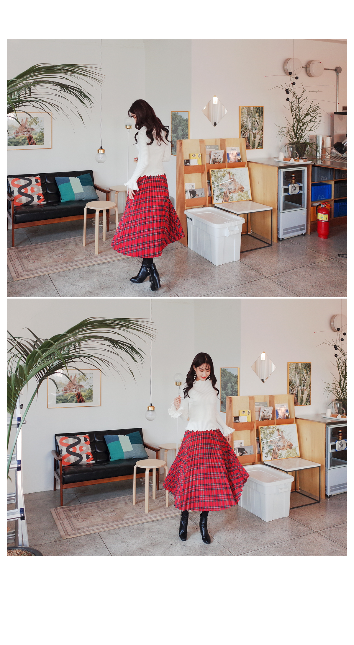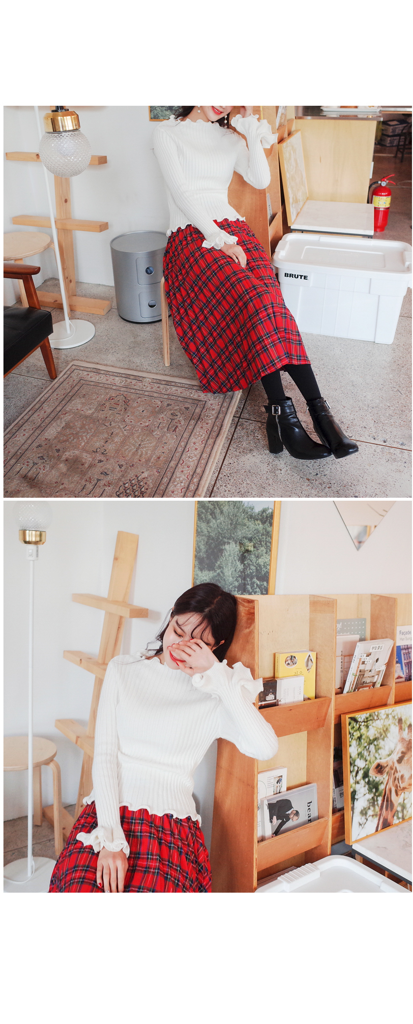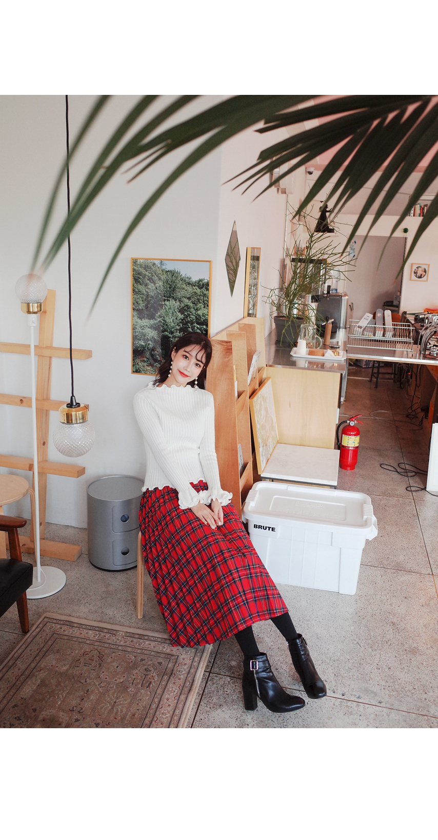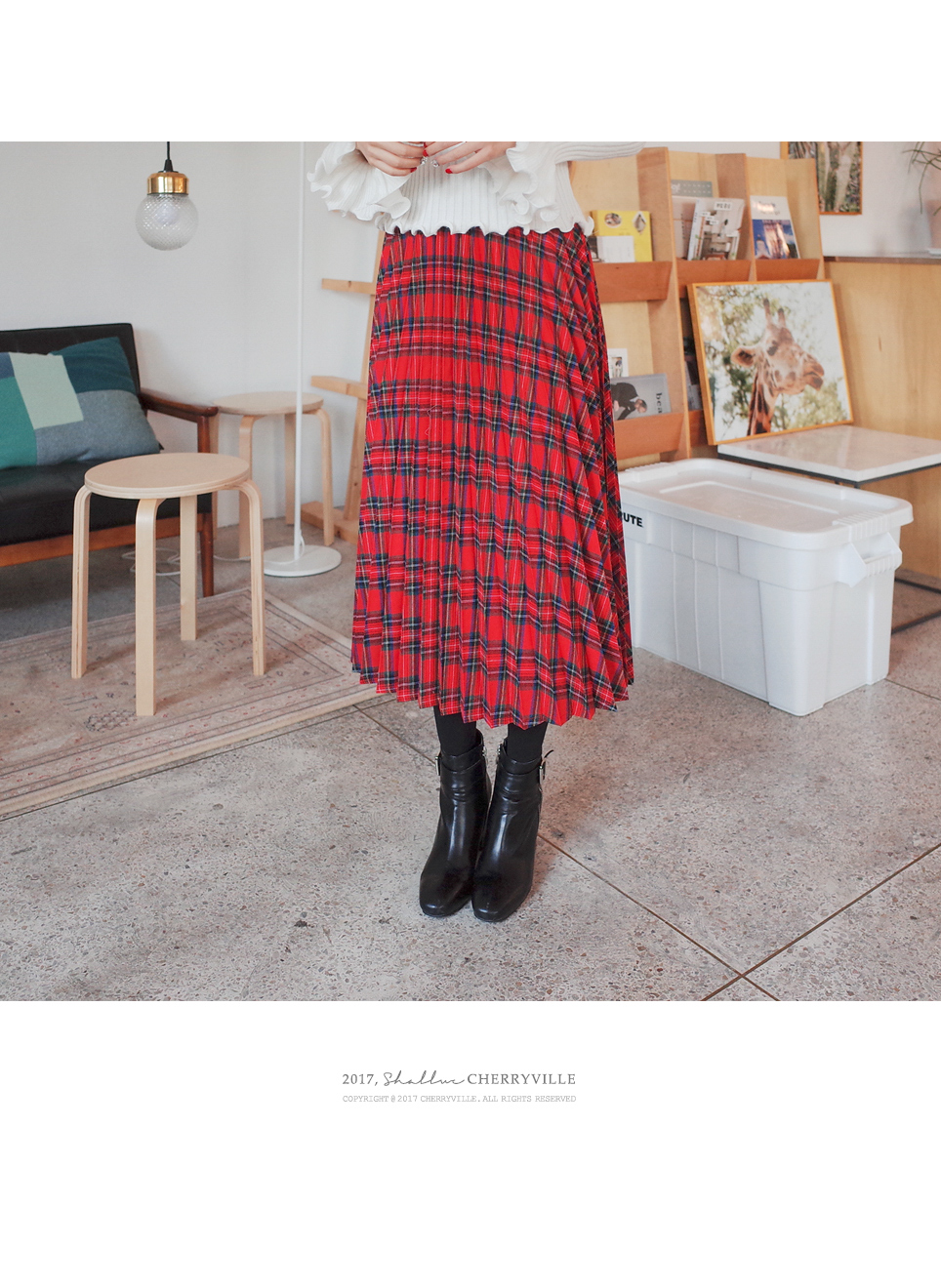 체크플리츠감성 스커트