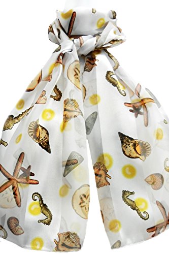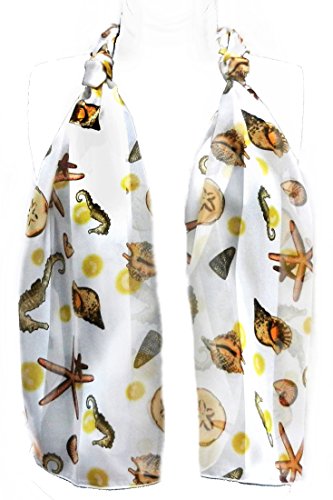 -. Feature : White Background with starfish, sand dollars, seahorses, conch shells, nautilus shells / Size: 13x60", One Size Fits Most, Polyester / Adult, Teen, Tween / Wear as a scarf, a belt, hatband, hair wrap or purse decoration. Use instead of ribbon on a gift. / Wrap around your wrist for a unique bracelet, or at the top of your boot for a boot scarf.