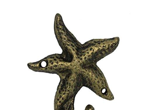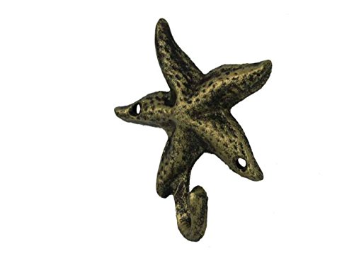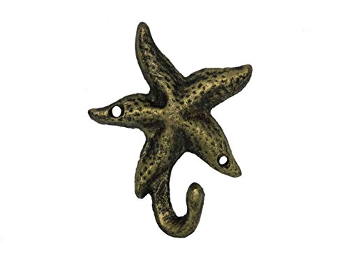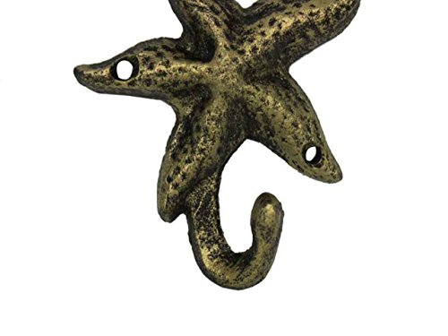 Hampton Nautical Decorative Cast Iron Starfish Wall Hook, Antique Gold