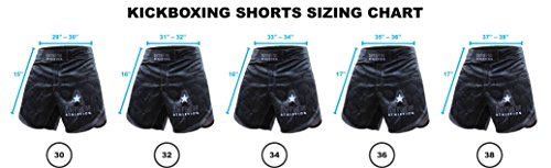 - Sizing: Small (30"), Medium (32"), Large (34"), X-Large (36"), XX-Large (38"). If your waist measurement is between sizes, please order the next size up (for example, 35" waist should order 36"). Please note that these shorts feature a mid-thigh length. For a more traditional length MMA short, please see our Resilience Fight Shorts.