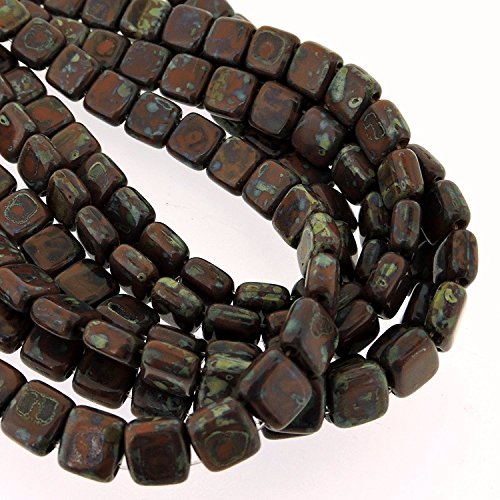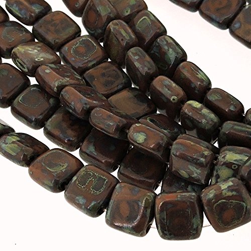 Czechmate 6mm Square Glass Czech Two Hole Tile Bead - Picasso Umber