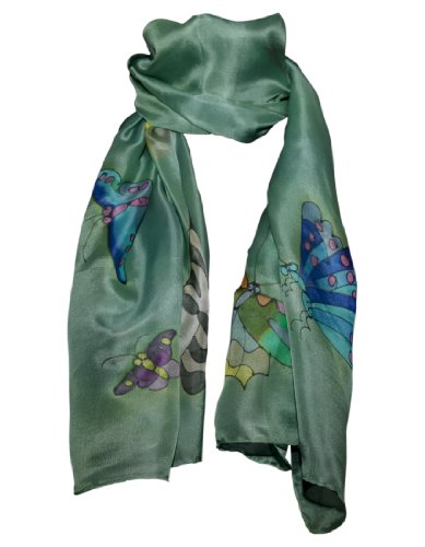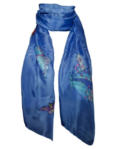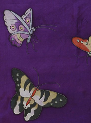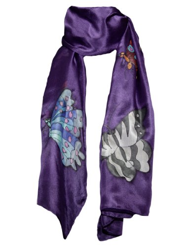 Handbemaltes Seidenhalstuch - Schmetterlinge auf Lila - 100% Seide - 140 x 42cm