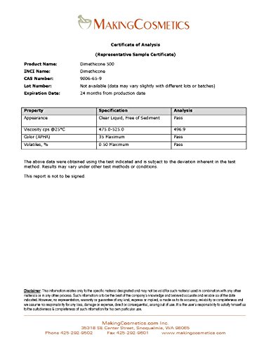 -. Binding : Office Product -. Brand : MakingCosmetics -. EAN : 0885496343080 -. Feature : Dimethicone 500 is a 100% active linear silicone polymer with a viscosity of 500 cps / Pure & concentrated ingredient. Not a finished cosmetic product. Use as raw material for making cosmetics or add directly to finished skin care products. / High-quality product from the USA / Free Shipping / Supplied by MakingCosmetics Inc., an ISO certified & FDA registered ingredient supplier -. IsAdultProduct : 0 -. Label : MakingCosmetics -. Manufacturer : MakingCosmetics -. MPN : ELL-DIMT-01-125 -. PackageQuantity : 1 -. PartNumber : ELL-DIMT-01-125 -. ProductGroup : Beauty -. ProductTypeName : BEAUTY -. Publisher : MakingCosmetics -. Studio : MakingCosmetics -. Title : Dimethicone 500 - 4.2floz / 125ml -. UPC : 885496343080