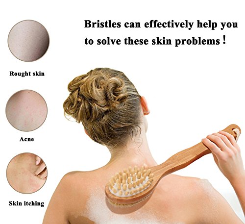 MULTIFUNCTIONAL: 16.5" perfectly curved bamboo handle which makes it easy to reach any part of your body with either the natural boar bristles and help remove body dead skin and toxins, stimulates blood circulation, suitable for all people.
