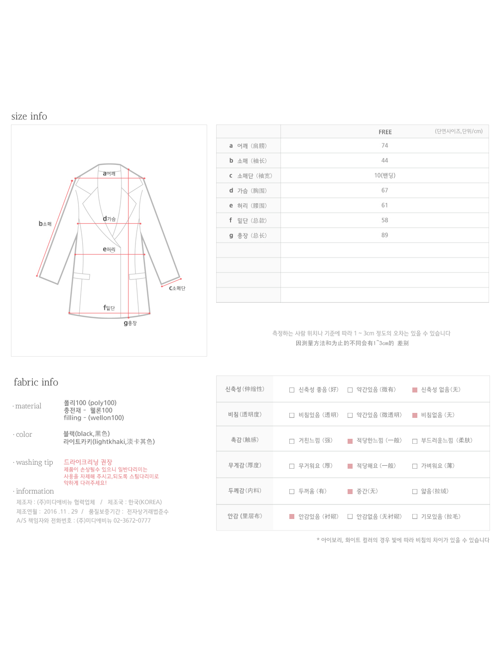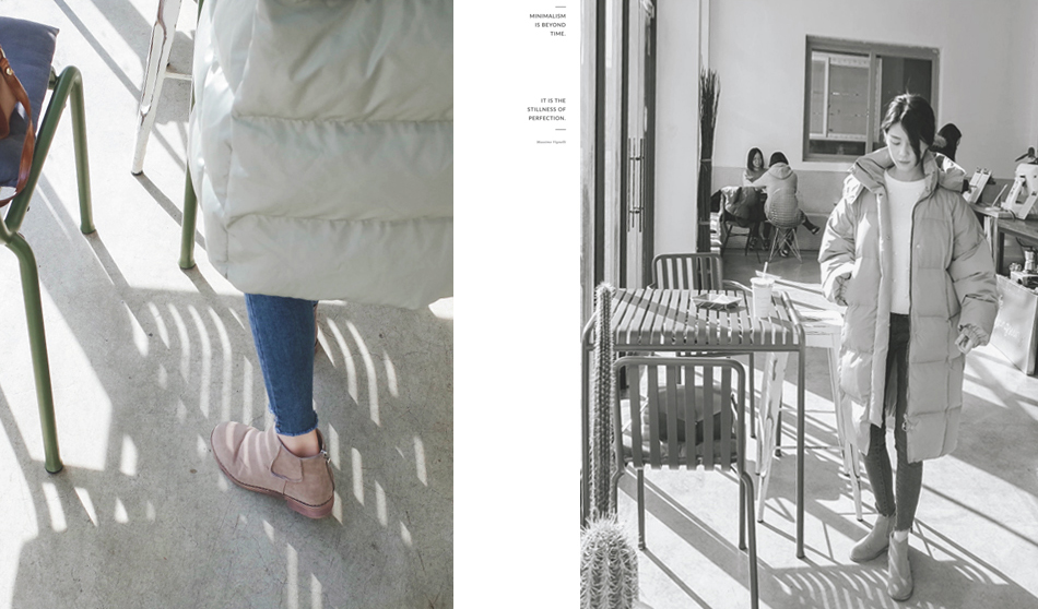 핏을 살려주며 무릎길이감으로 더욱 따뜻하고 포근하게
