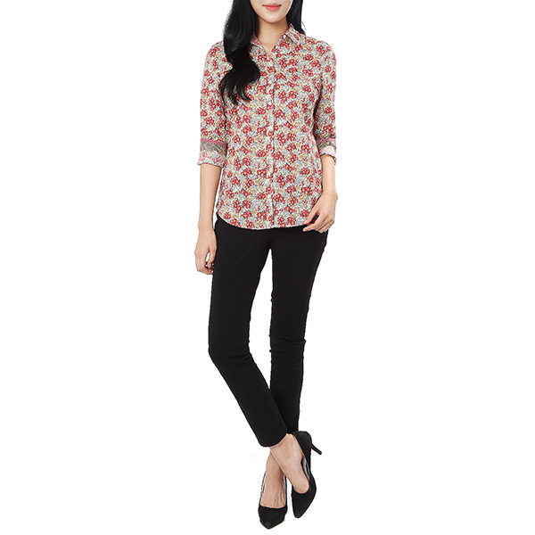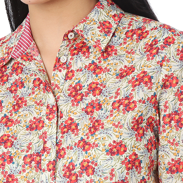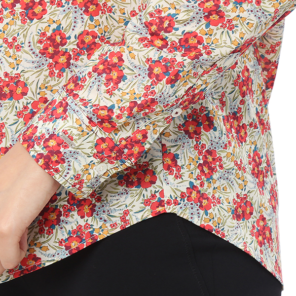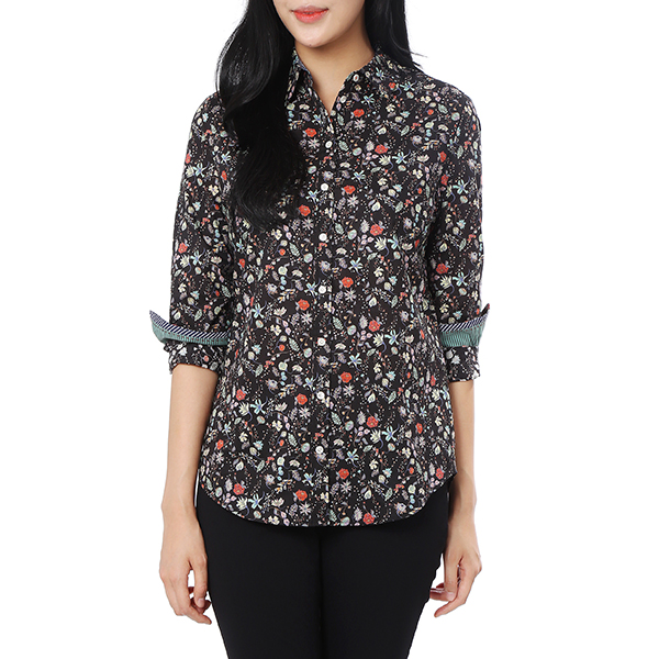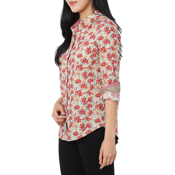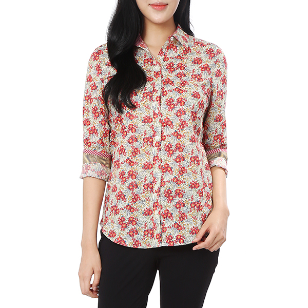 화사한 컬러감이 돋보이는 플라워 패턴으로 포인트 룩으로 매치 하기 좋은 긴팔 셔츠입니다