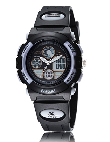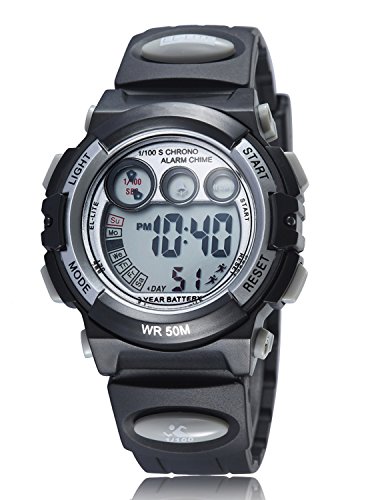 LED Dual Time Zone Day Date Alarm Recorder Field Sports watch