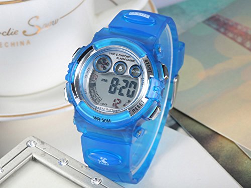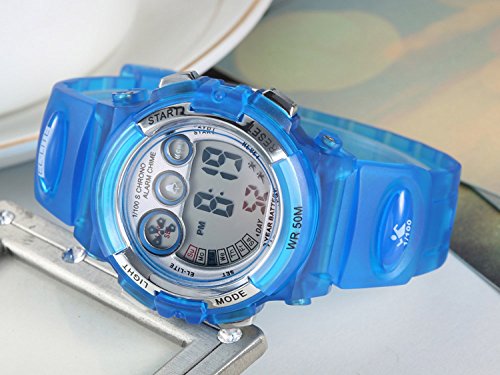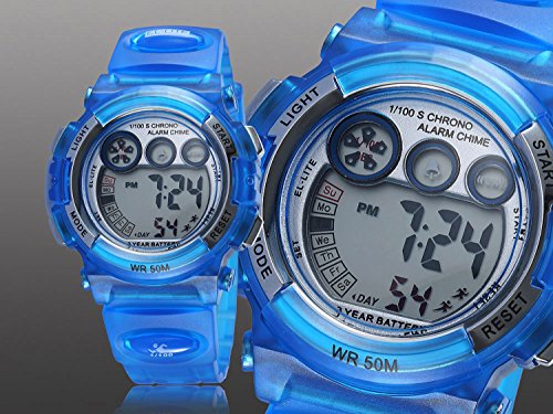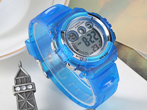 Description: Imported 35 mm resin case with glass dial window JAPANESE QUARTZ movement digital display Round sport watch with multi-function bright dial and silicon band featuring LCD display With bule dial blue silicon band