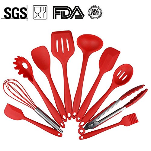-. Feature : ☼ HIGH QUALITY -- Silicone cooking utensils are 100% FDA Grade and BPA Free. These heat resistant cooking tools can be used up to 446°F and are non-stick friendly. And they're stain and odor resistant.They simply won't discolor, warp, melt or chip. / ☼ SCRATCH RESISTANT & PREVENTION--Non-stick hygienic silicone coating that allow you to stir, mix, grill, flip, and fry directly in your fancy pots and pans without fear of damaging your cookware! / ☼ EASY TO USE & REDUCED CLEANING--Our ergonomic non-slip grip utensils are a joy to use because you can cook hygienically and reduce clean up time. Simply toss them in the sink or dishwater and watch as the grease, oil, and marinades easily wash right off in seconds! / ☼ COMPLETE COOKING UTENSILS SET COVERS ALL KITCHEN NEEDS--Spoonula, brush, whisk, large and small spatula, ladle, slotted turner and spoon, tongs, pasta fork, perfect for all types of foods and cooking. / ☼ PROMISE TO UNDERTAKE --100% Satisfaction Guaranteed. If you are not satisfied with your purchase, you can return them for a full refund -no questions asked.