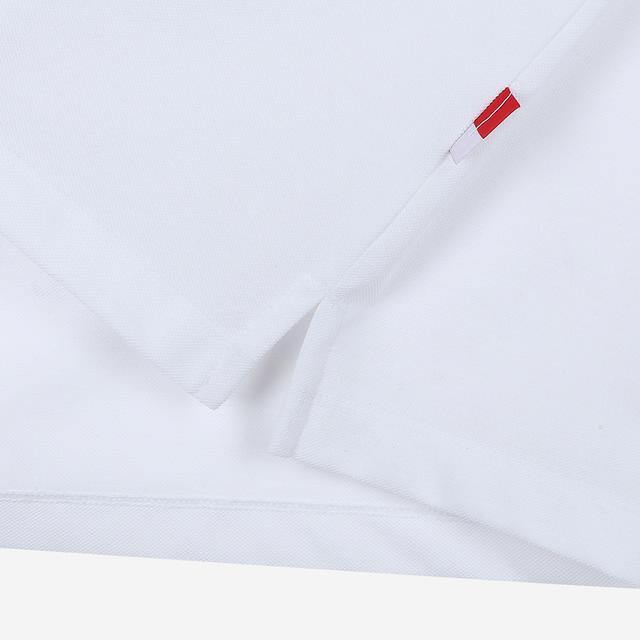 소맷단과 카라 부분의 컬러 배색과 양쪽 밑단의 트임으로 포인트를 연출한 반팔 티셔츠입니다.