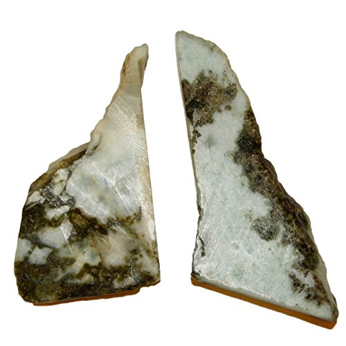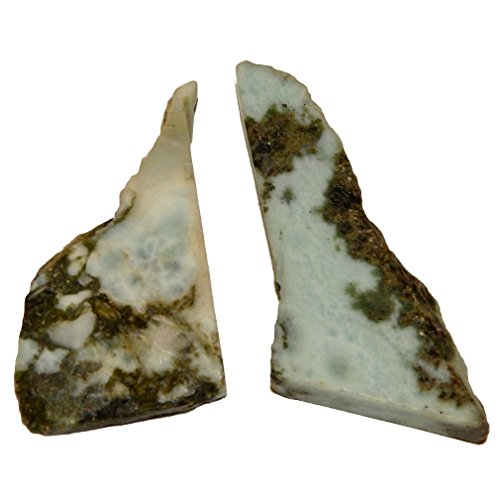 Your crystal pair is made from natural blue larimar crystal of the Dominican Republican. This partially polished slab set has blue tones with rocky matrix and raw elements. Hand picked treasure from Satin Crystals to you. Receive this exact set pictured when you order from Satin Crystals.