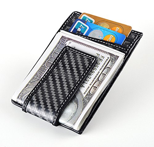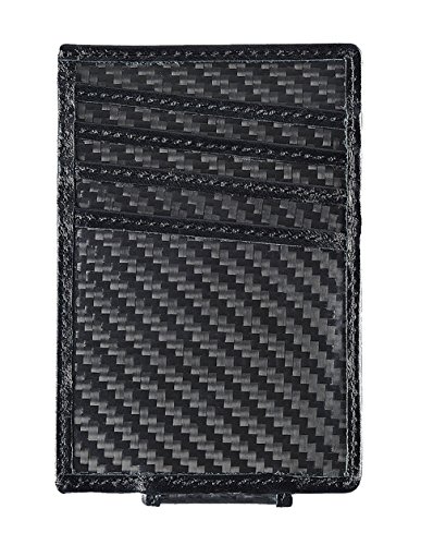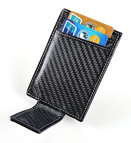 -. Feature : functional---4 credit card/business card slots in front, 2 card pocket and strong magnetic money clip in back, 1 slit pocket in the middle that you can store some coins or folded high-value bills. / size---- measures 118mm(l)*80mm(w) *17mm(h), extremely slim and lightweight, a great substitute for a clumsy leather wallet, unnoticeable in your front pocket, takes up much less space, keep all stuff together, more organized and neat. / stylish feature----sleek and smooth touch ,unique 3k twill weave texture , modern high-tech gloss look, makes you cool and personalized . Perfect gift for men / added security----RFID blocking keeps your personal information safe, prevents electronic thieves from stealing it simply by walking near you with a scanner. It's a good protection for your id, credit cards, business cards, various bank cards, public transport cards, and some membership cards. / material composition----made of genuine high strength carbon fiber, thinner and lighter but stronger than steel ,very durable and protective. And carbon fiber is TPU coated, allowing it to remain flexible.