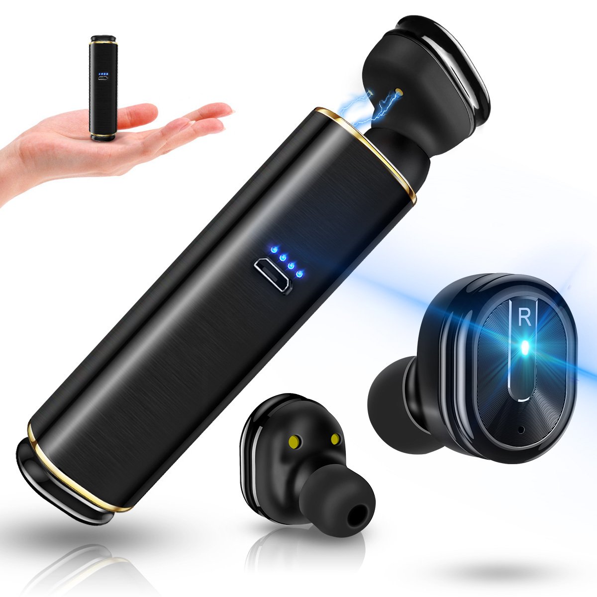 ♬【コンパクト&超軽量】イヤホン本体のサイズは1円玉より小さい超小型で、耳に装着すると、後ろから完全に見えません。片耳5gの軽いボディ、長時間の装着でも高い快適性 です。左右を繋ぐケーブルはありません、全くケーブルのないストレスフリーな新しいワイヤレスイヤホンです。440mah充電BOX付き。イヤホンへ4回充電可能。片耳の音楽再生/連続通話時間約3時間、最大12時間の連続使用が可能。