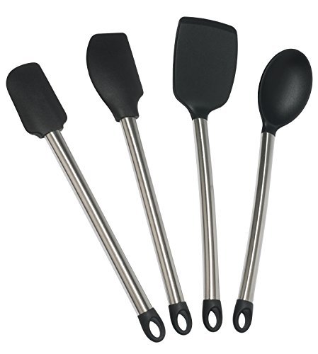 -. Title : Elite KitchenwareTM Stainless Steel Kitchen Utensil Set - 4 Piece Silicone Cooking Utensils with Large & Small Spatulas, Serving Spoon & Turner Flipper Spatula - Spatula Set by Elite Kitchenware