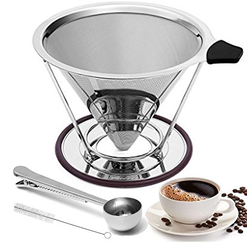Pour Over Coffee Maker Quality 4 Cup Pour Over Reusable Coffee Filters Stainless Steel Cone Dripper with Stand And Bonus Spoon
