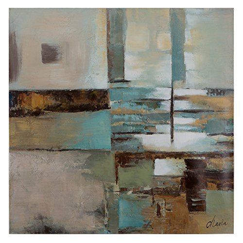 DCA021B is an abstract painting which can evoke very powerful feeling. Such a composition is compelling both to the heart and the mind. It can fit in almost any context. A complex geometric system painted in earthy neutral colors mixed with icy Blue touches, this painting is bound to impress and baffle the viewer. DCA021A is built from various brushstrokes which are of different colors. They are sewn together with dark straight lines into a geometric pattern. The darker shapes balance the painting. The coppery and pea green splashes give it a warmer feeling which powerfully contrasts with the cooler, almost frozen tones of Blue. The geometrical shapes slowly fade into creamy light beige tones. The shapes and colors seem to be falling towards the center-right area of the painting, where the geometry becomes more crowded, more compact. It is a powerful piece which can easily induce a meditative state with relaxing effects on the owner. This work of art is hand painted on a gallery wrapped canvas and signed by the artist ensuring each piece has some subtle differences making it distinctly unique to each owner. The high quality canvas wraps tightly around a sturdy wooden frame that will last for years to come. The painting comes with either a pre-strewn wire or hinges on the back so that its ready for immediate wall mounting. The light weight of the piece allows for easy hanging without worry of damaging your wall. The acrylic paint creates a rich texture that will really catch the light, creating a very sophisticated allure. Each painting is carefully packaged and inspected prior to shipping, ensuring every piece arrives safely and ready to hang on your wall, making for a pleasant purchasing experience from beginning to end.Feature