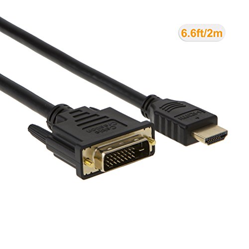 HDMI to DVI Cable, CableCreation 6.6 Feet HDMI Male to DVI(24+1) Male Cable, Gold Plated HDTV to DVI Cable, Support 1080P,3D, 2M / Black