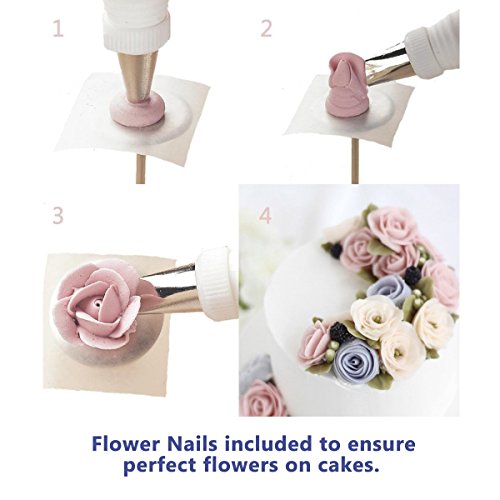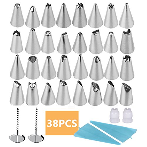 ★ Wide range suitability ★ 38 pieces cake decorating set, including 32 icing piping tips, 2 reusable piping bags, 2 coupler and 2 flower nails, is a great choice to decorate your cakes, cupcakes and cookies.