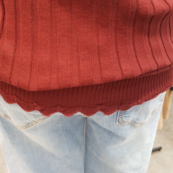 캐주얼하게도 잘 어울리는 니트이에요목선이나 밑단이 예쁘게 되어있어서 더욱 여성스럽게 입으시기 좋아요