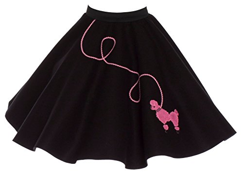 Our unique, homemade skirts are lovingly hand-cut and sewn by seamstresses right here in the USA. Rest assured that you are supporting a local business when you purchase our high-quality clothing. We use only the highest quality, acrylic felt available for long lasting comfort and durability. These skirts can be worn again and again, from costume to the dress up box. Poodle and leash appliques are professionally embroidered, not ironed on, to ensure they never fall off. We offer 3 different sizes with an elastic waistband, to provide a snug, comfortable fit. With a wide variety of colors available, your special young lady is sure to find just the right one to make her happy. The authentic, vintage, 1950's look of our poodle skirts is a must for that daddy-daughter dance, Halloween costume, sock hop, themed party and more!Feature
