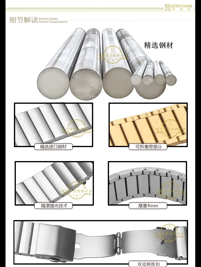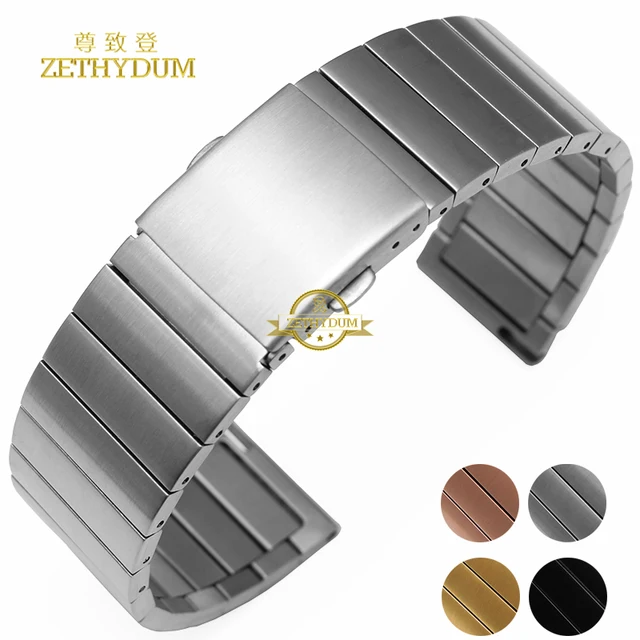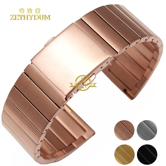 스테인레스 스틸 팔찌 고체 금속 손목 16 18 20 22 미리메터 시계 스트랩 손목 밴드 실버 골드 컬러 장미 시계 벨트