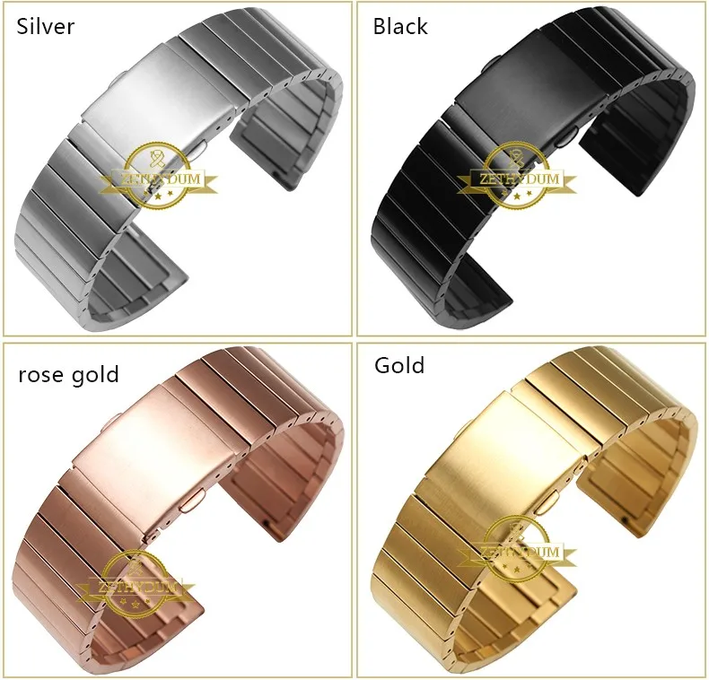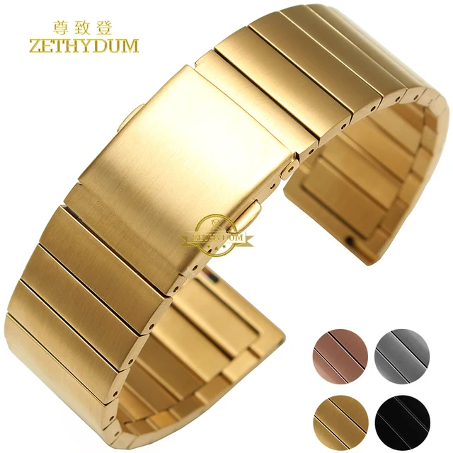 [해외]스테인레스 스틸 팔찌 고체 금속 손목 16 18 20 22 미리메터 시계 스트랩 손목 밴드 실버 골드 컬러 장미 시계 벨트