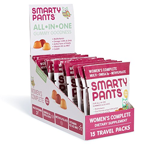 -. Title : SmartyPants Women's Complete Gummy Vitamins: Multivitamin, CoQ10, Folate (Methylfolate), Vitamin K2, Vitamin D3, Biotin, Methyl B12, & Omega 3 DHA/EPA Fish Oil, 90 count (15 Day Supply)