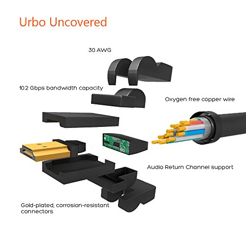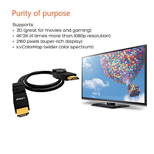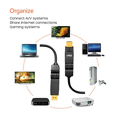 Urbo Multi-Pivot Swivel and Rotate HDMI 30AWG, 6.5 Feet Cable with Flexible Gold Plated Connectors for Easy Access to Difficult Corners and Ports