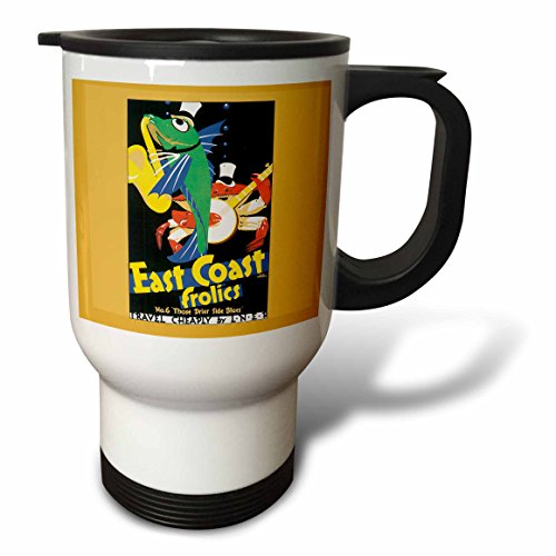3dRose tm_169823_1 East Coast Frolics Drier Side Blues Fish Playing a Saxophone Stainless Steel Travel Mug, 14-Ounce, White