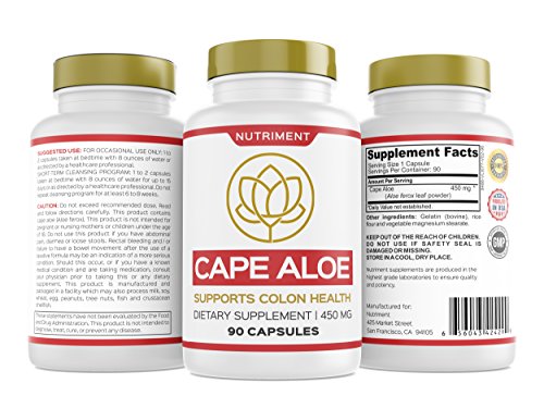 -. Feature : NATURAL LAXATIVE - Cape Aloe is an all natural supplement that supports bowel movement and colon health. It has traditionally been used to relieve constipation and help with colon cleansing. / IMMUNE SUPPORT - Cape Aloe is known botanically as either Aloe capensis or Aloe ferox. Aloe ferox is an extremely familiar plant, especially for its therapeutic qualities. The sap of this plant is employed in the form of a laxative. Commonly known as bitter aloe, this plant has been used for medicinal purposes for more than two centuries. Using this supplement regularly helps to support your immune system with the all natural benefits of Cape Aloe. / AN ALL NATURAL, HEALTHY FORMULA: The reason why the Cape Aloe supplement is effective is because of its all natural formula. Made with GMO free natural ingredients, the cleansing supplement has NO harmful additives, and zero artificial flavors and colors. On the contrary, these powerful capsules contain Cape Aloe that will give you benefits of a natural laxative when you need it! / A SAFE SUPPLEMENT, MADE IN THE USA: This pure Nutriment dietary supplement is formulated in a GMP certified laboratory in the USA. This means that all of the Cape Aloe and all of the other ingredients and manufacturing processes have been tested and certified for their premium quality and absolute safety. So you can use the Cape Aloe supplement without any fear! / YOUR SATISFACTION IS GUARANTEED: Here at Nutriment we're so confident about the quality and efficacy of the Cape Aloe dietary supplement that we have backed it up with a 90-day money back guarantee. So if during the first 30 months you don't notice any difference in your bowel health, Nutriment will give you your money back - no questions asked. Your satisfaction is our top P.R.Iority!