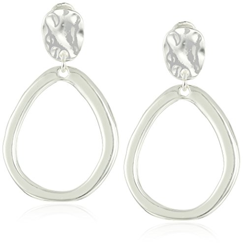 Anne Klein Silver Tone Drop Hoop Clip-on Earrings