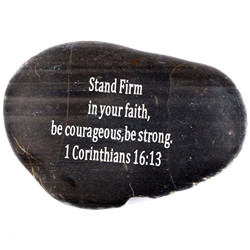 Engraved Inspirational Scripture Biblical Black Stones collection - Stone III : 1 Corinthians 16:13 : " Stand Firm in your faith, be courageous, be strong. "