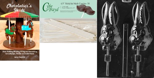 Cybrtrayd 'Large Long Eared Bunny Lolly' Easter Chocolate Candy Mold with 50 4.5-Inch Lollipop Sticks and Chocolatier's Guide
