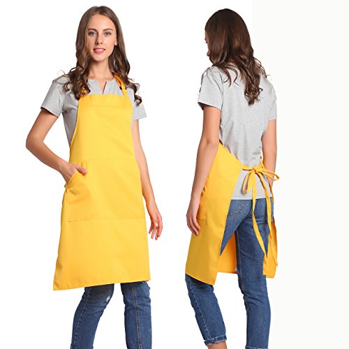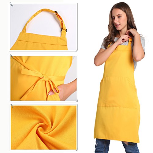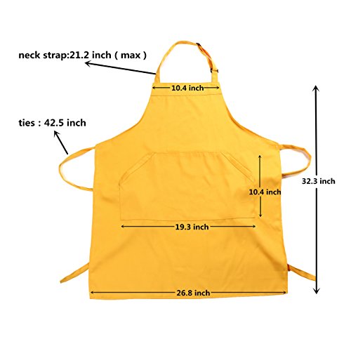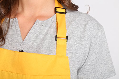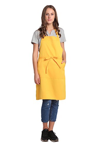 BIGHAS Adjustable Bib Apron with Pocket, Extra Long Ties for Women, Men Kitchen, Home, Cooking (Yellow)