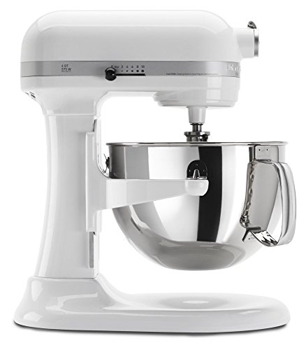 This stand mixer has a 575 watt motor with 10 speed control. The 6-quart polished stainless steel wide-mouth bowl has a contoured steel handle for easy moving. Includes a burnished power-knead spiral dough hook, flat beater and wire whip, which move in a 67 point planetary mixing action for more even mixing. The KitchenAid Professional series stand mixer's deliver power, versatility and reliable performance to make this the #1 choice for the kitchen.Feature