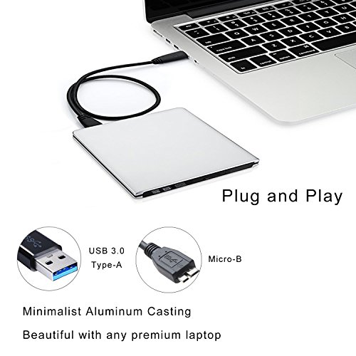 External CD Drive DVD Drive USB 3.0 CD Player for Laptop DVD Burner & RW Writer - Aluminum Alloy CD DVD Drive for Laptop, Desktop & Macbook, Mac OS and Windows 10/8/7