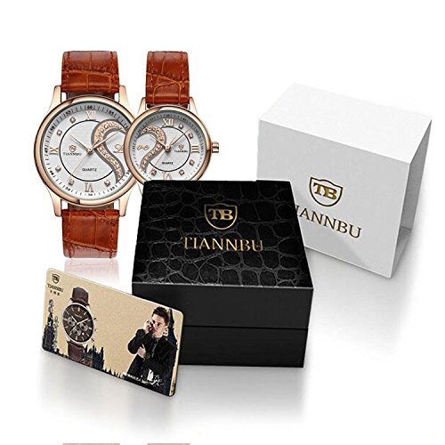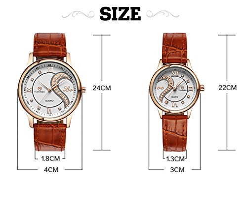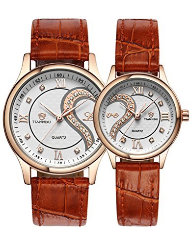 "Thank God I Met You! " This his-and-hers watch is designed for sweet lovers, newlyweds, couples. Two dails placed side by side, a complete heart and a letter "love" appear. High quality deluxe shining bling bling hand-inlaid rhinestones definite this watch a luxury style. The dials are white, with Roman numerals set at the 3,6 and 12 positions. The hands are beveled sword-style and plated in rose gold, making the watches easy to read and breathtaking to gaze at. Inside the watches tick high quality Japanese made quartz movements that will register the time with the superb accuracy of +/-15 seconds a month and genuine leather, offering a comfortable wear feeling for the wrist.
