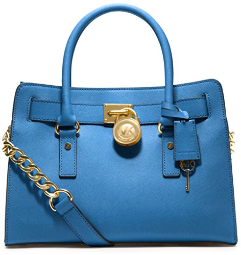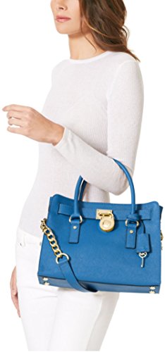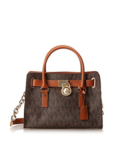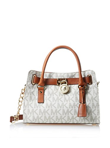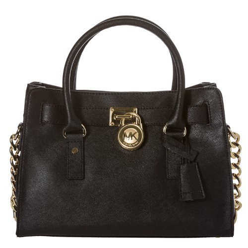 Soft leather and luxe hardware grace this gorgeous design from MICHAEL Michael Kors. Bold chain detailing and a prominent signature lock charm at front perfectly accent this femme satchel silhouette. MICHAEL Michael Kors bag Leather Double handles with 5" drop; shoulder strap with 11" drop Magnetic snap closure Gold- or silver-tone hardware; signature charm Interior features zip pocket, 2 slip pockets and key fob 12-3/4" W x 9" H x 5-1/2" D Includes dust bag Silhouette is based off 5'9" modelFeature