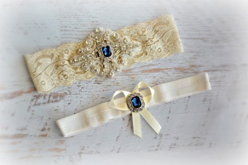 Ivory Sapphire Blue Pearl Wedding Bridal Garter Belt Set Keepsake Toss Vintage Add a touch of class to your bridal accessories with this elegant heirloom garter set. Exquisitely handcrafted, the set will be part of the lasting memories created during your joyous event. Keepsake Garter The star of this bridal set is a stunning keepsake garter that features a hand-beaded applique embellished with a dazzling faux sapphire button and rhinestone applique. Crafted with soft stretch lace, the garter is not only gorgeous, it's also comfortable to wear during the wedding ceremony and through the reception. Toss Garter The tossing of the garter by the bride's spouse is a long-standing tradition. This unique set includes a toss garter that beautifully matches the vintage-inspired style of the keepsake garter with its delicate satin bow and shimmering crystals. Sizing Garters are traditionally worn on the thigh 3 to 6 inches above the knee. To ensure proper sizing, wrap a measuring tape around the spot you wish to wear the garter. Make sure you don't measure the spot too tightly. A piece of yarn or string can be used if you don't have access to a soft measuring tape. Wrap the yarn, then use a ruler to see the measurement. If you don't love it we'll take it back! We stand behind everything we sell. If you are not satisfied with your Contessa Garters purchase, you may return your purchase for a replacement or refund within 30 days of receipt. Simply click the Add to Cart button at the top right of this page to place your order now. 0 |