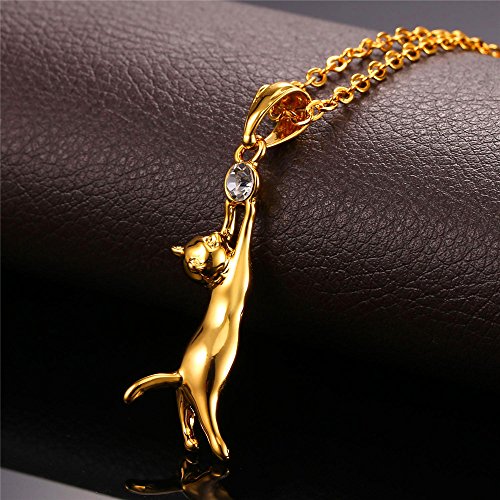 -. Title : U7 Cute Cat Necklace Rhinestone with Chain Platinum/18K Gold Plated Girls Charm Smooth Collarbone Necklace