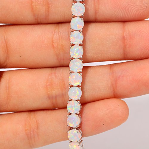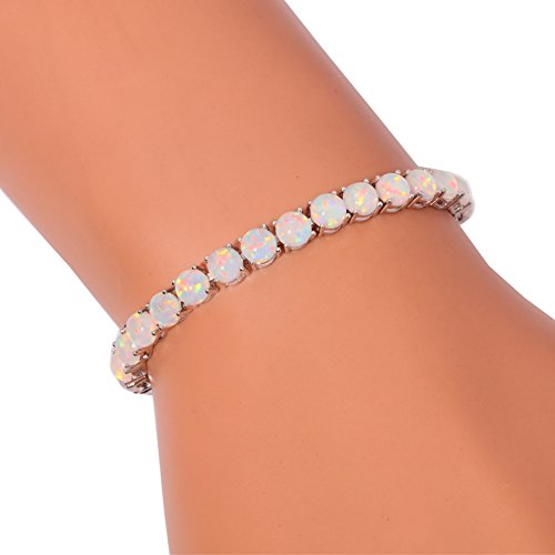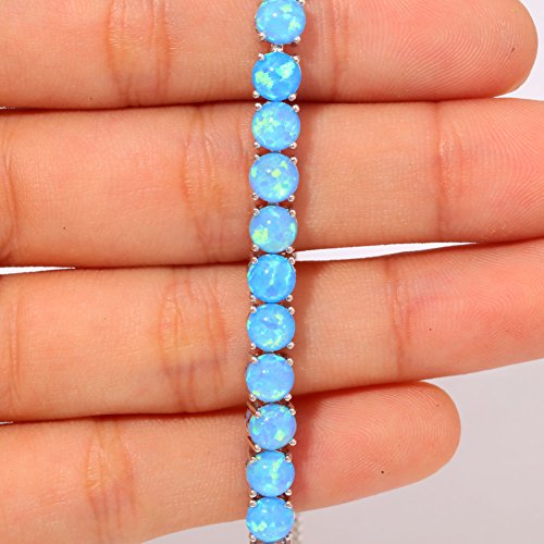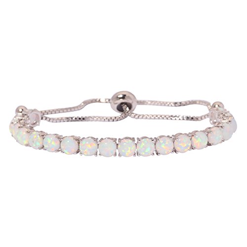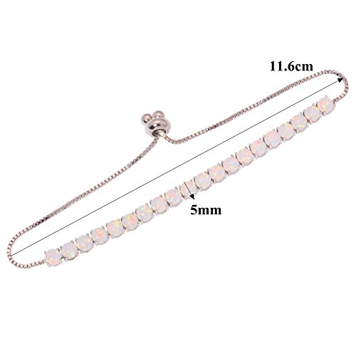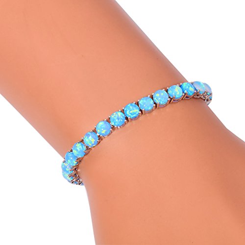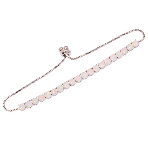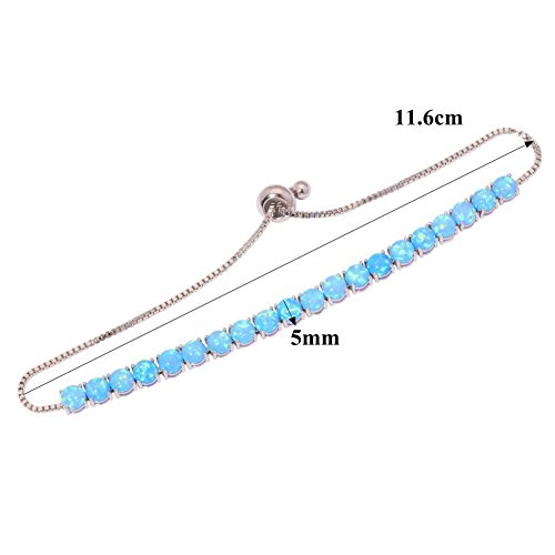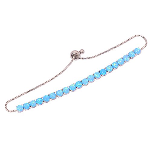 -. Title : CiNily Created Blue White Fire Opal Rhodium Plated for Women Jewelry Gemstone Adjustable Chain Bracelet 4 1/4"-10 5/8"